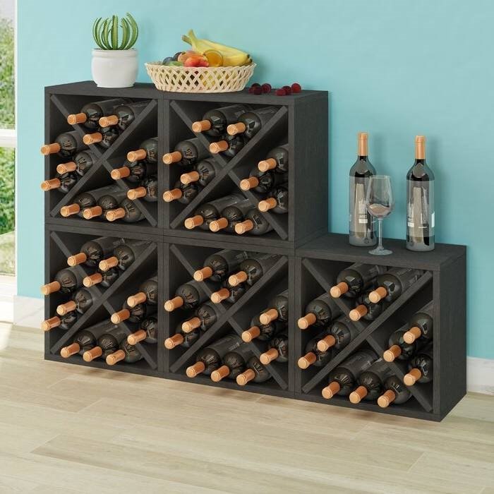 With this Stackable 12-Bottle Wine Rack in Charcoal Black Wood Finish, organizing your wine collection just got easier. This boxed-shaped wine rack is constructed from sustainable eco-friendly materials and is offered in a choice of available finishes. It features room for up to twelve bottles, and multiple units can be stacked to expand your storage capacity.